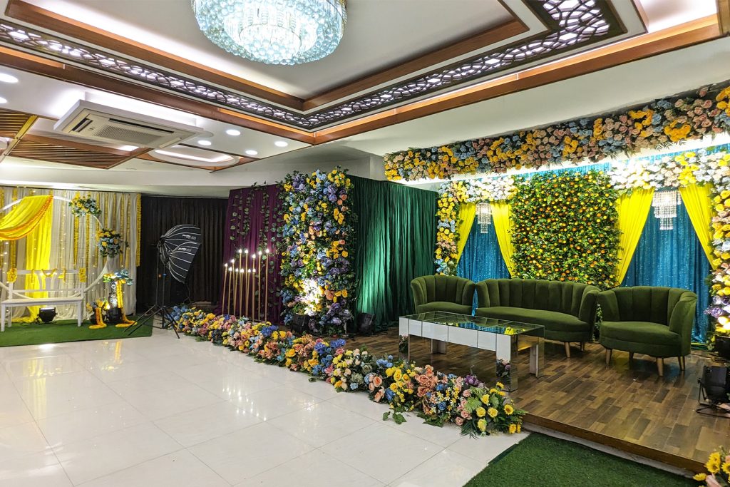 Green is the colour of new beginnings, a perfect symbol for the start of a new life. Yellow adds a touch of joy and purity, while royal blue portrays trust and elegance. Pastel tones and mixed florals convey romance and love. This theme embraces nature with a touch of royalty, offering a classy decor perfect for a grand evening. You can easily bring this decor idea to life at a Dhanmondi-based venue like Paragon Convention Hall, budget-friendly yet full of elegance.
