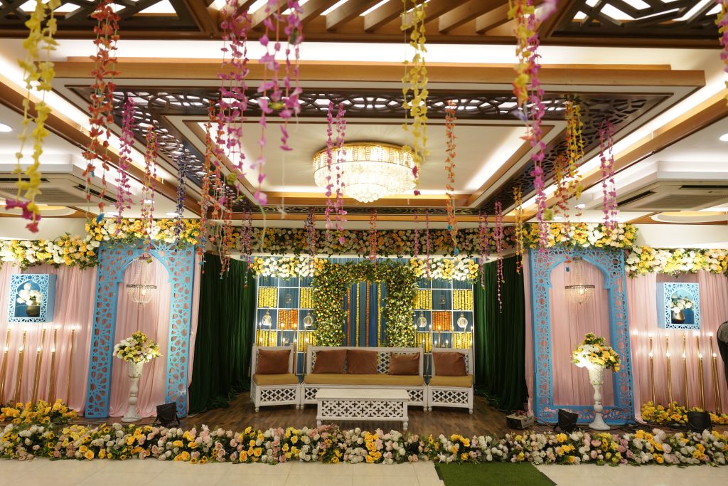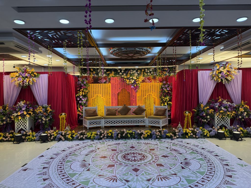 It’s not just a stage; it’s a harmonious blend of tradition and a peaceful vibe. A magical play of colours and lighting creates an atmosphere that reflects the softness of love and romance, wrapped in joy. With a simple yet thoughtful design, every colour is intentional, never loud and always elegant.